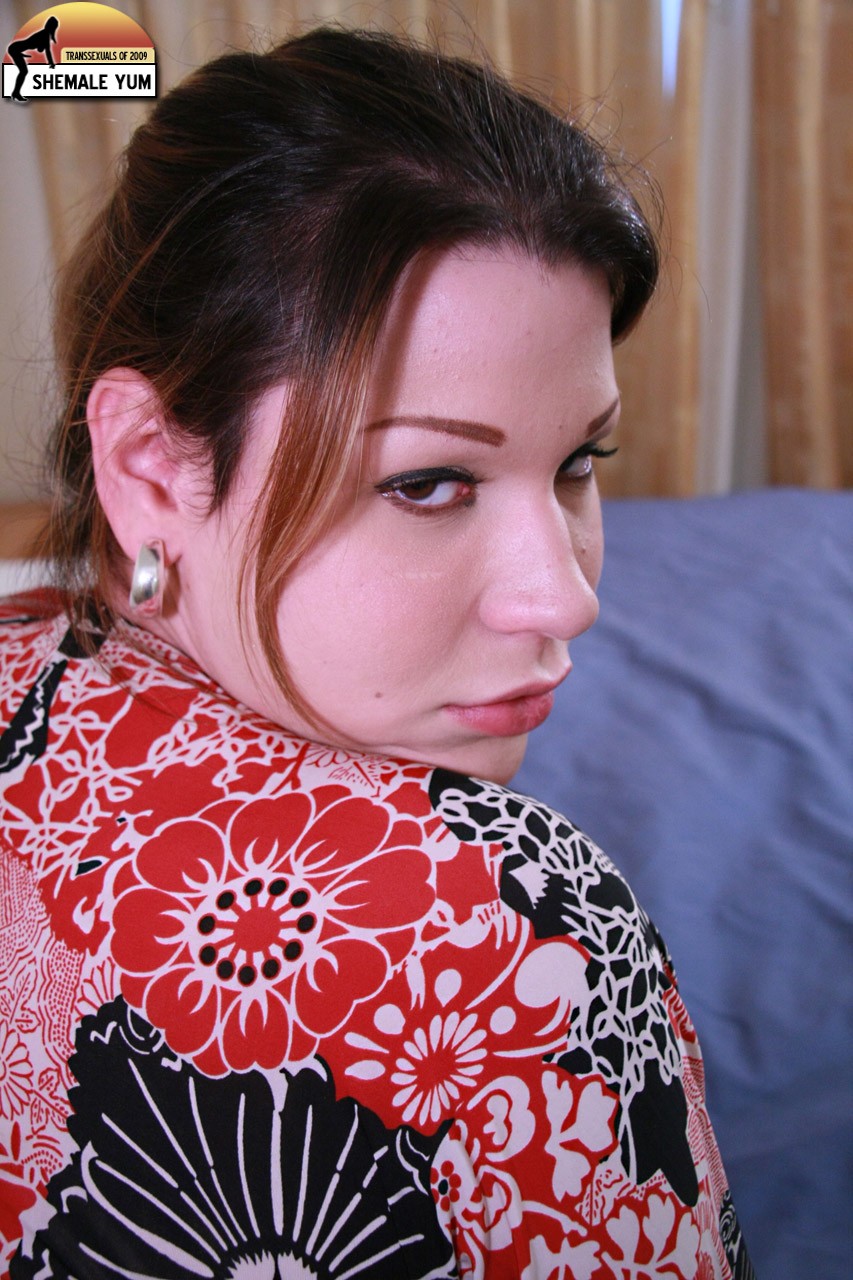 Beautiful shemale Ana masturbates on her bed after a sexy striptease