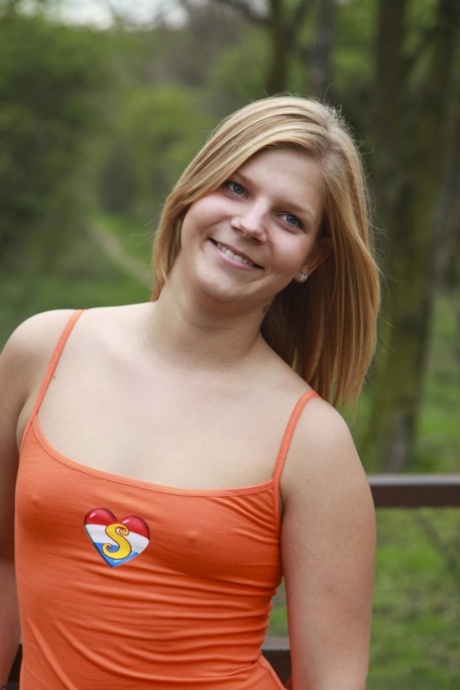 Dutch babe Dee exposes her big booty and small tits in the park