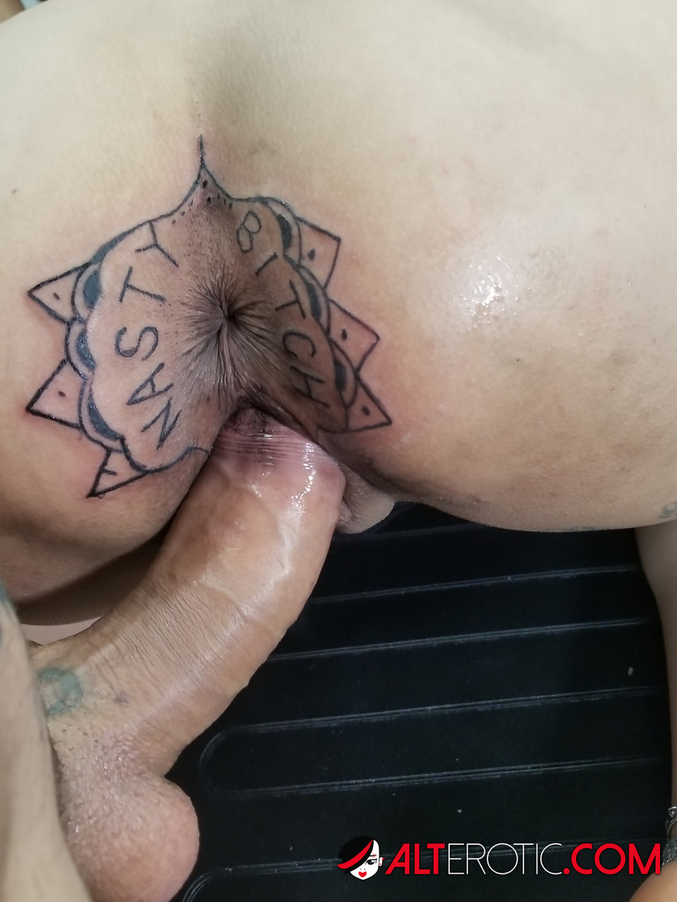 Latina chick Kitty Jaguar gets a butt tattoo before being fucked
